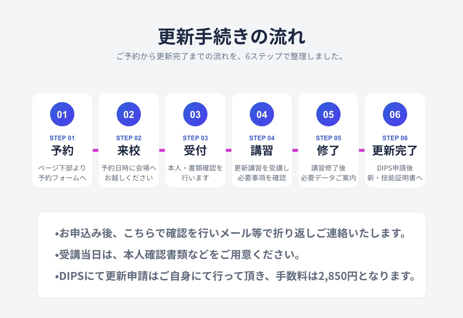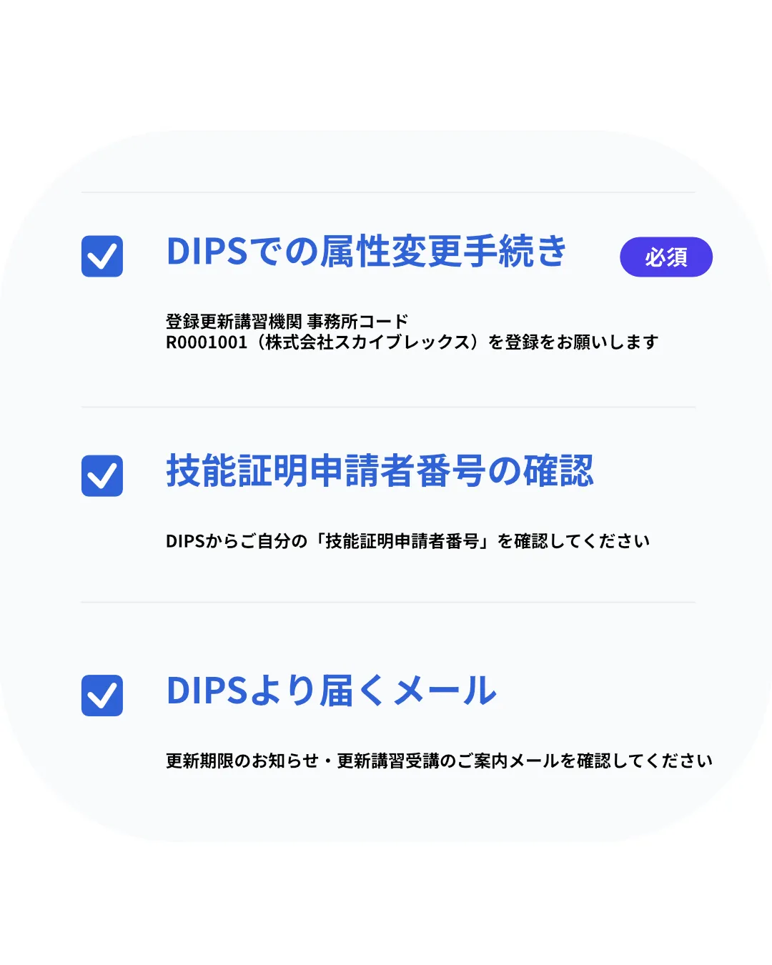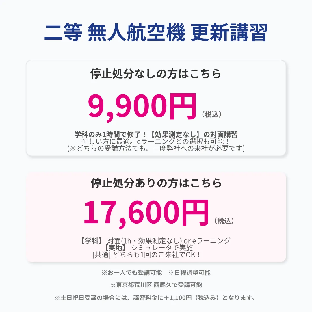 更新講習については、「株式会社スカイブレックス」事務所にて実施します。